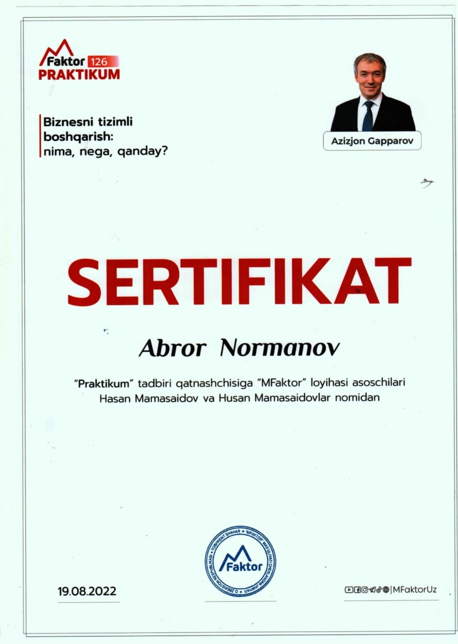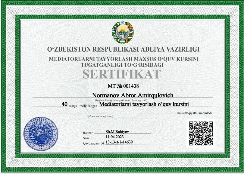 Здравствуйте! Меня зовут Аброр Амиркулович, и я основал наше патентное бюро с одной простой целью — сделать защиту интеллектуальной собственности доступной и надёжной. За более 21 лет работы мы помогли сотням изобретателей и предпринимателей оформить патенты и товарные знаки по всему миру. Мы берём на себя все этапы: от предварительного анализа идеи до получения патента в ваших руках. Каждый клиент для нас — партнёр, и я лично слежу за качеством наших услуг и оперативностью обратной связи.