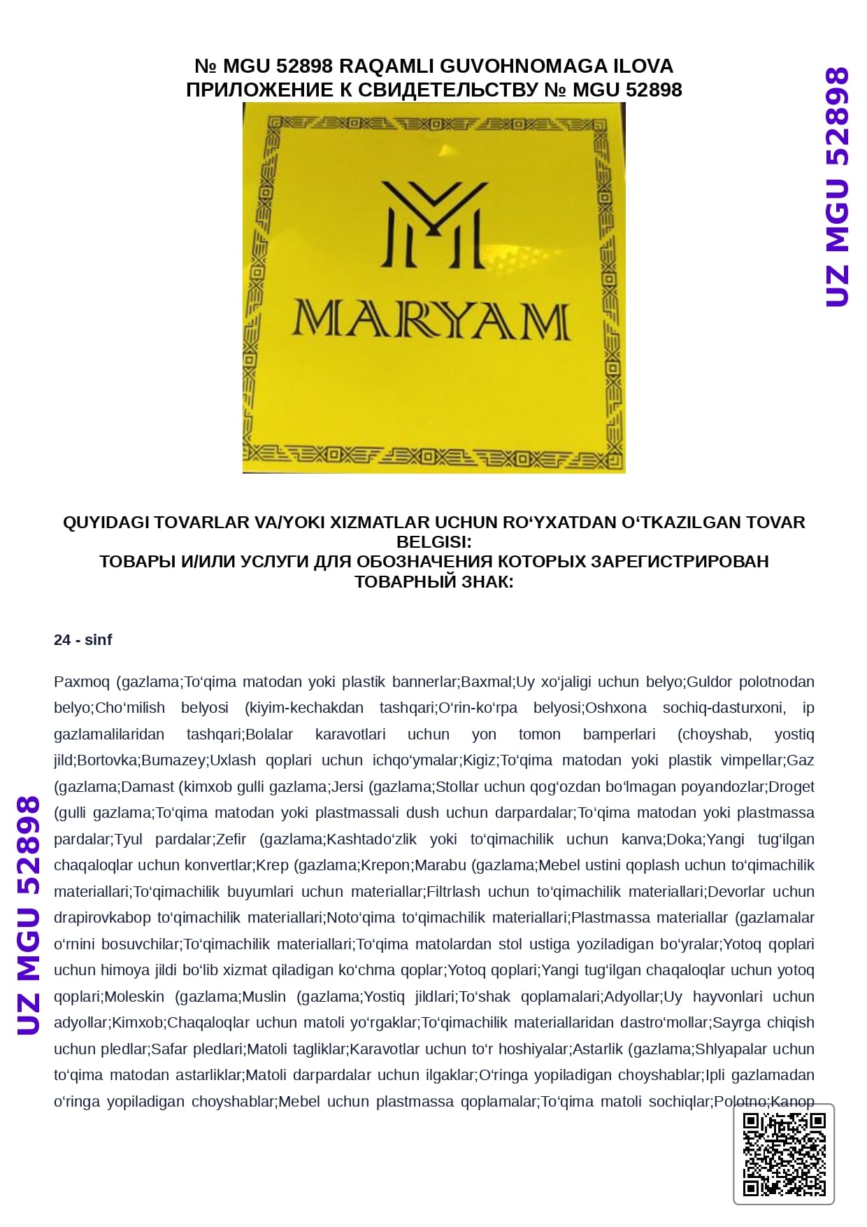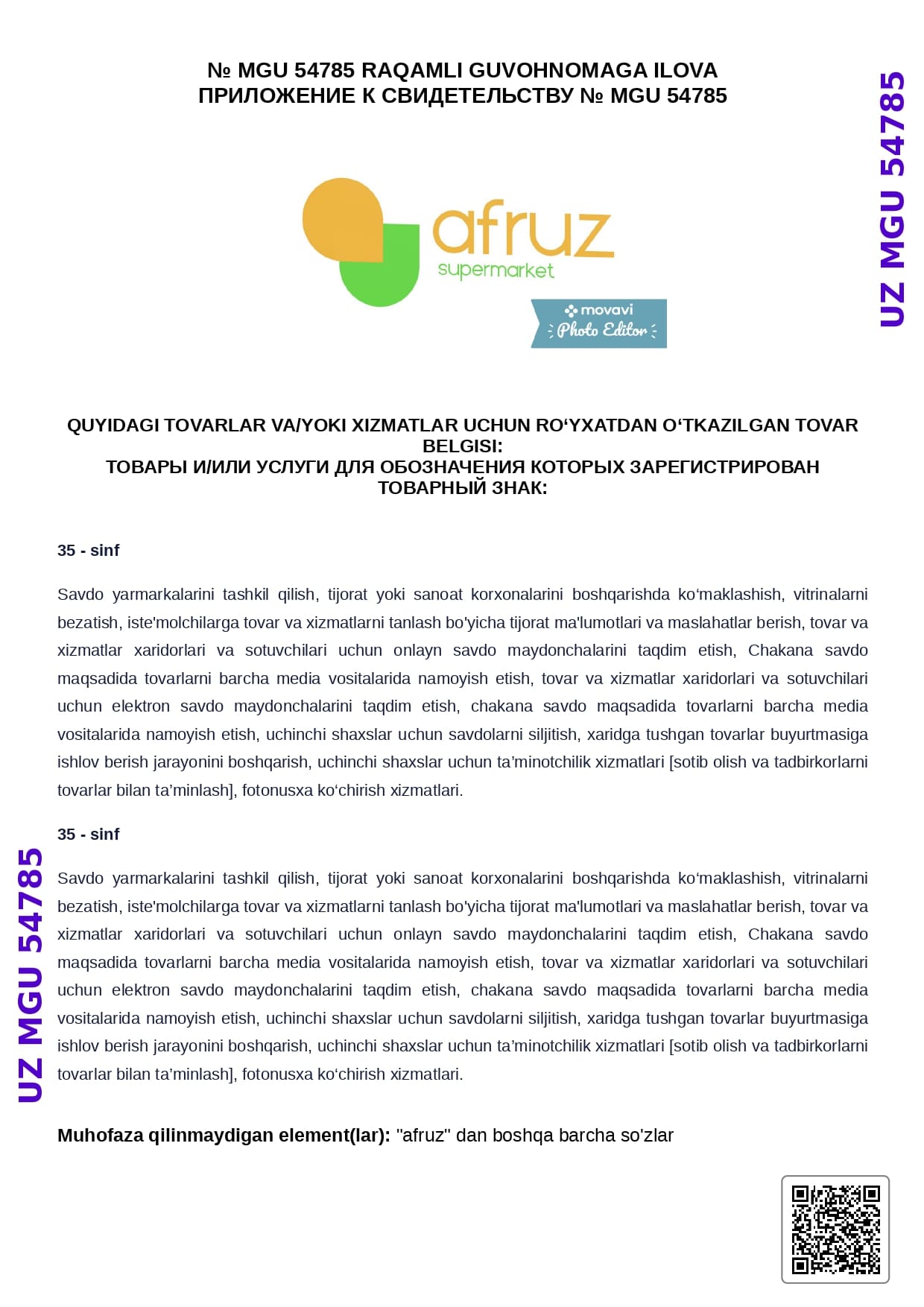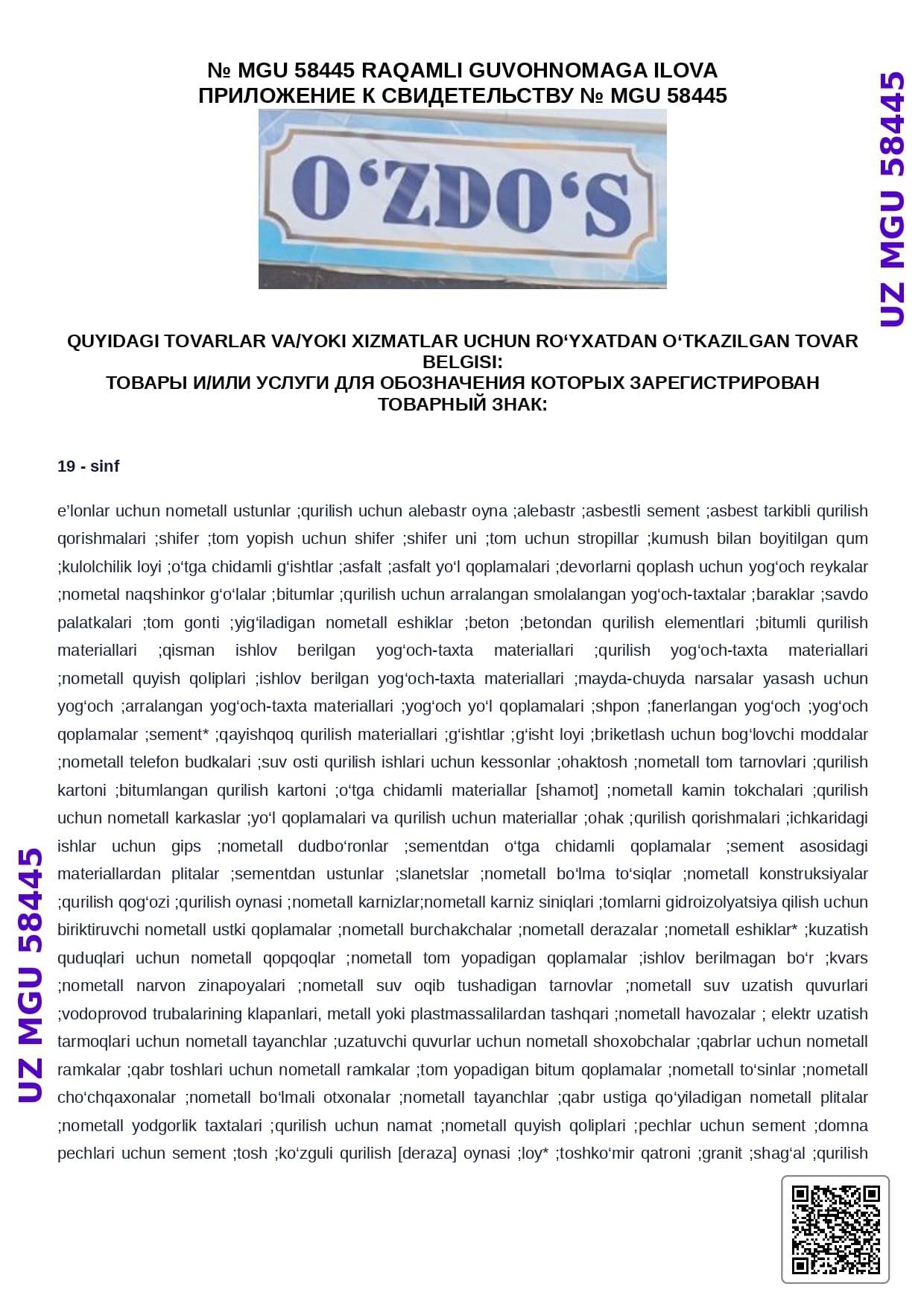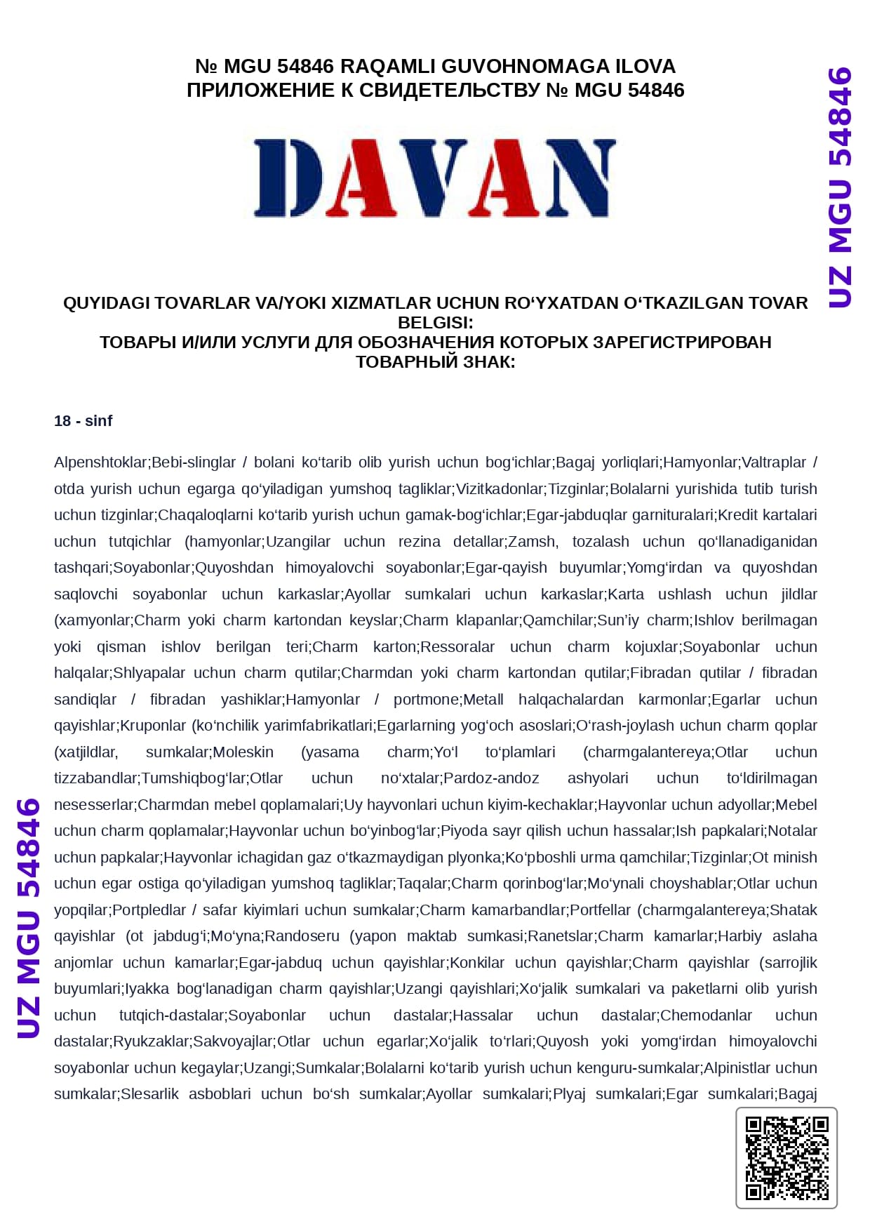 Guvohnomagacha yetkazilgan patentlar va tovar belgilari